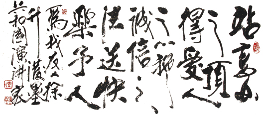 站高山之頂,得愛人之心。施誠信之法,送快樂予人。